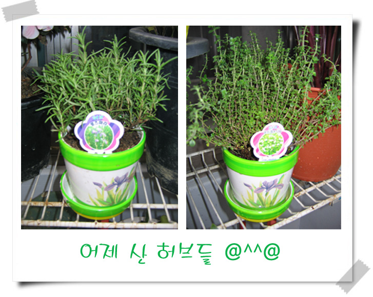허브는 햇빛과 통풍만 잘되면 정말 잘큽니다. 집에도 4개있는데 종류는 다 다르고 잘크더군요~