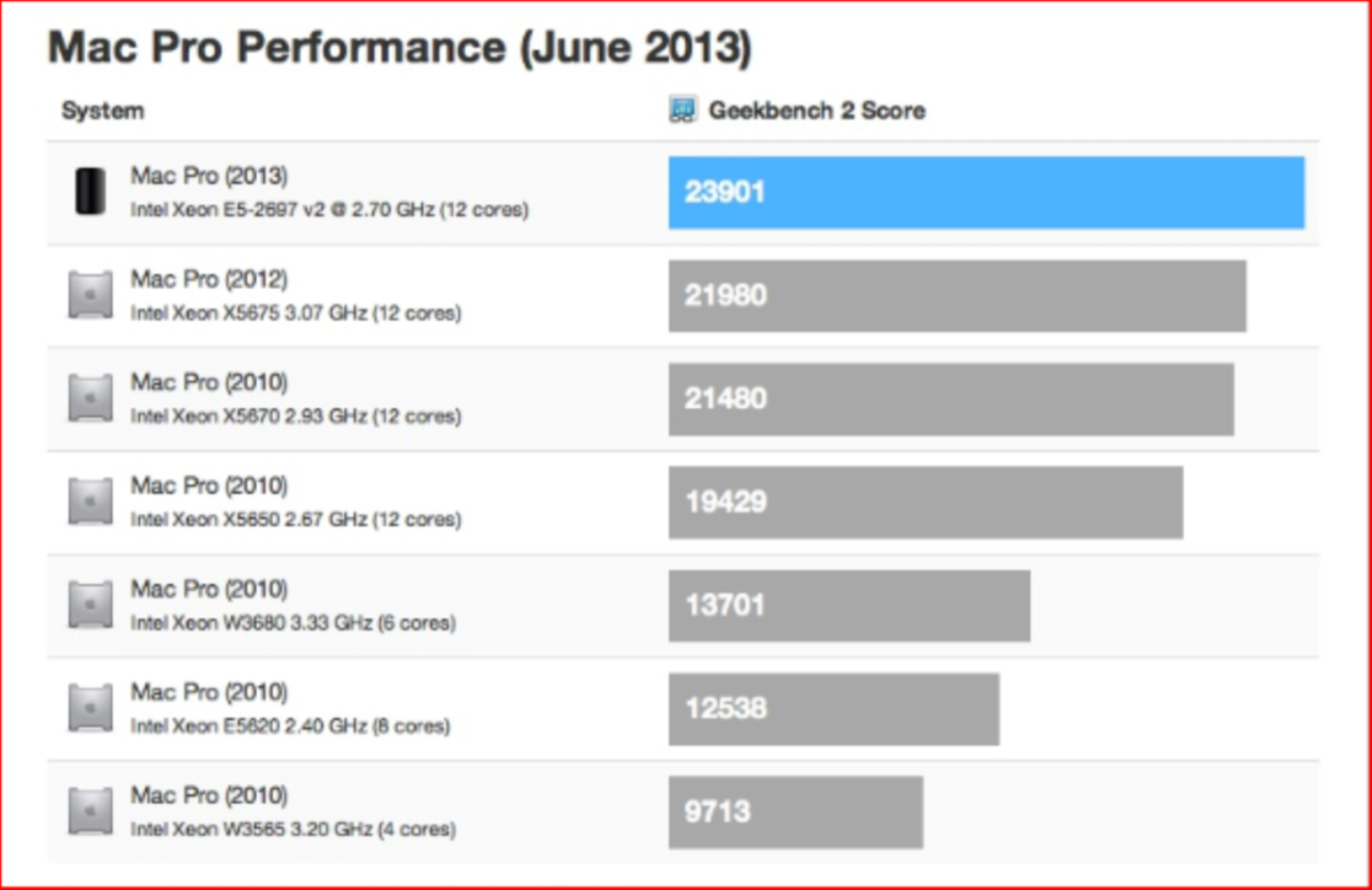 그러나 중요한 CPU Performance의 Benchmark Test에서는 맥프로 Westmere processors로서