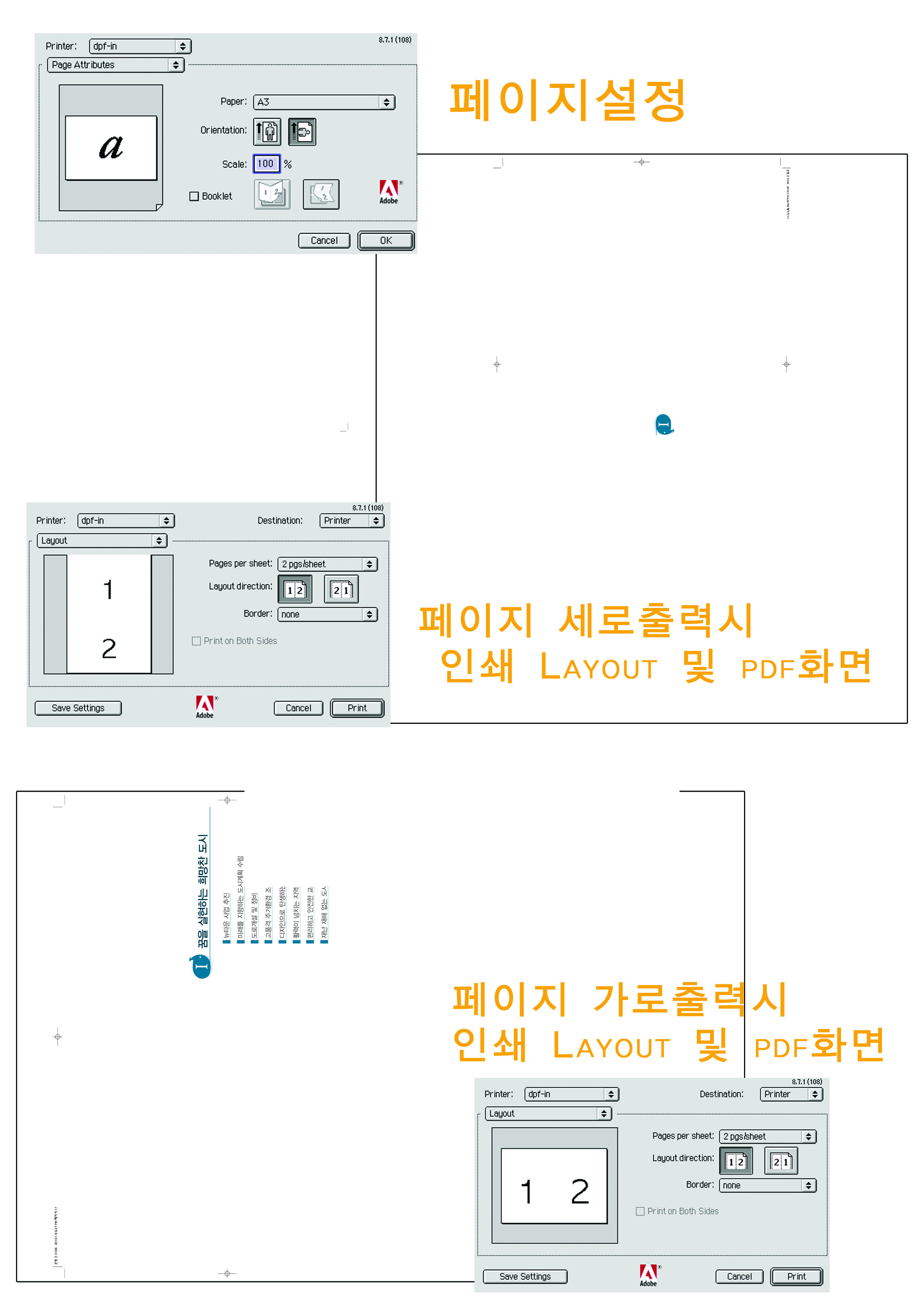 1,2페이지가 같이 A3에서 제대로 출력되는 법 좀 부탁드려요.